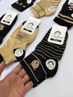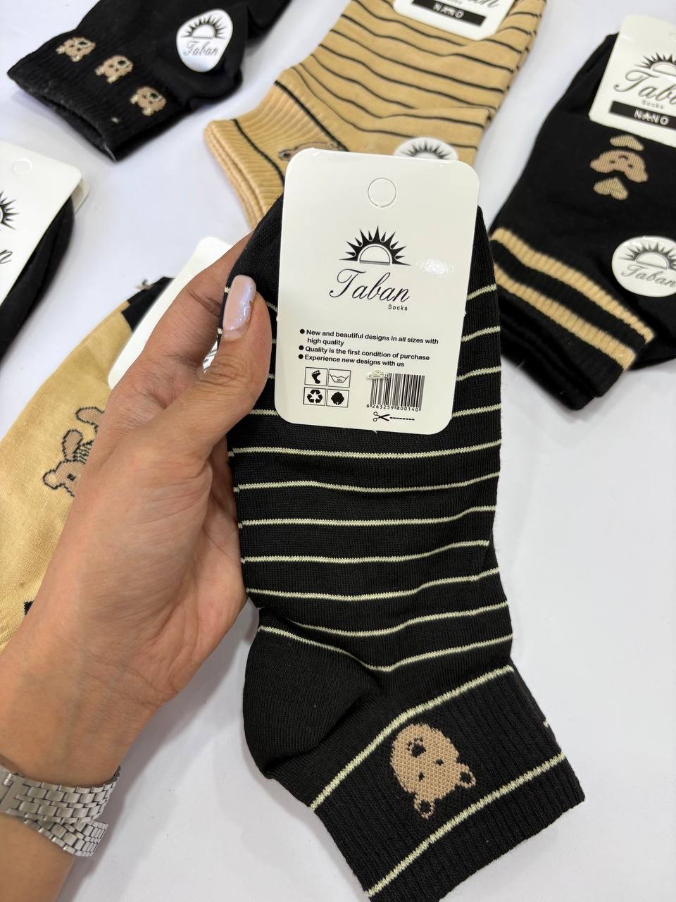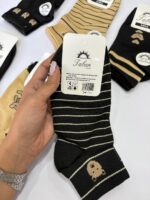 پک۶تایی نیم ساق تابان کرم مشکی تدی راه راه
